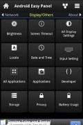Take control of your Android without wasting time Access all Android settings and customization easily and intuitively with this application also have access to hidden options of Android Quick panel with 12 system toggle options Volume control Ringtone selector for call notifications and alarms Quick access to battery usage statistics Tested in the Galaxy S2